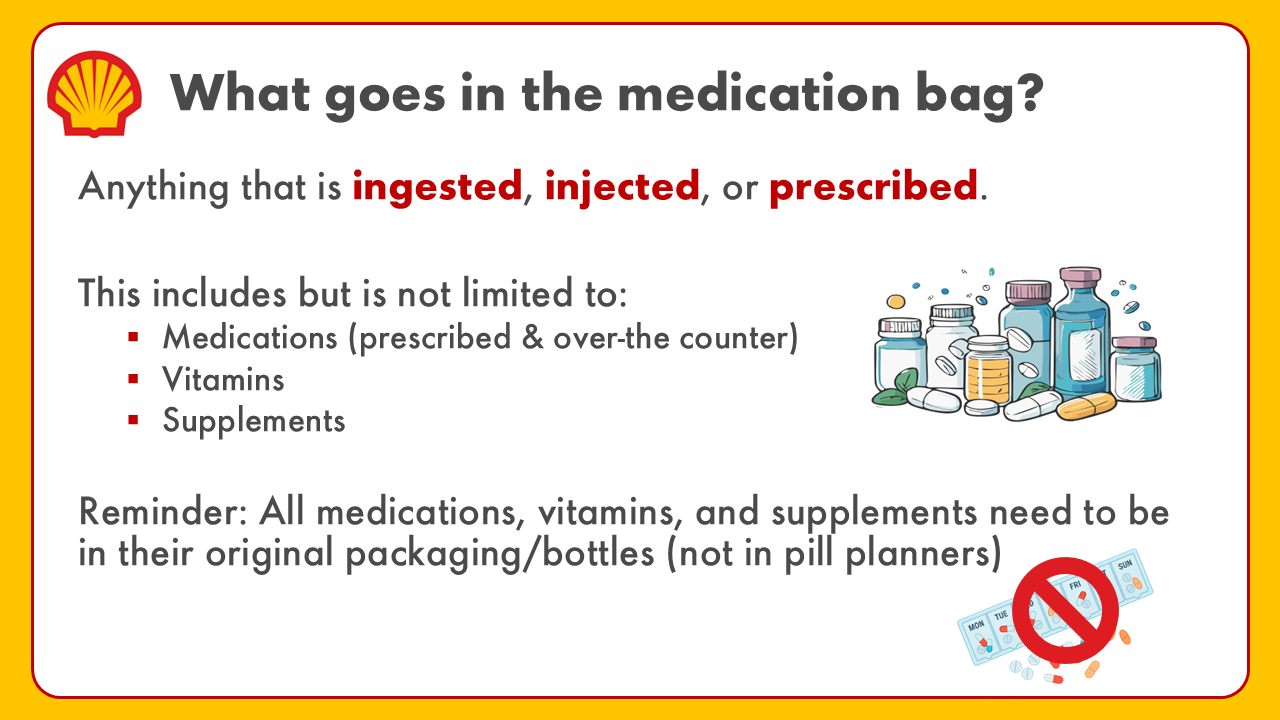 - 📁 Medication Bags: All offshore workers should continue using the Medication Bags at the heliport and present them to the installation medic within 24 hours of arrival.